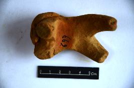 | Description / विवरण | Headless terracotta animal figurine with damaged surface and broken tail. Limbs are broken. Surface of the figurine is devoid of any decoration. |