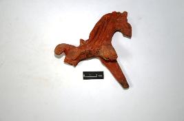 | Description / विवरण | Terracotta horse with circular applique eyes and broken mouth. Incised lines are observed on the neck. A small saddle is observed on the back of the animal.Hind limbs are broken. |