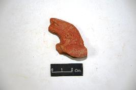 | Description / विवरण | Terracotta camel s head with applique circular eyes . A thin strap is observed around the neck. It is treated with red slip. |