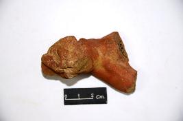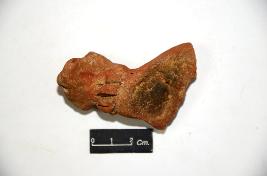 | Description / विवरण | Terracotta unidentified animal s figurine which is defaced and has broken limbs. A small horizontal band with ridges can be observed in the name of decoration. |
