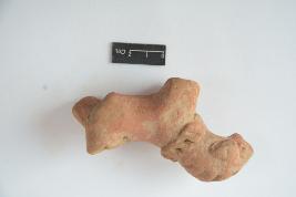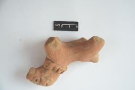 | Description / विवरण | Terracotta animal figurine with applique circular eyes and a decorated collar. Limbs of the figurine are broken with a damaged tiny tail. |