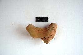 | Description / विवरण | Terracotta unidentified headless animal figurine with damaged limbs and incised decoration around the neck. |