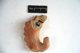 | Description / विवरण | Terracotta defaced horse with ridge marked mane. Body below neck is broken. |