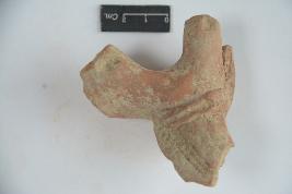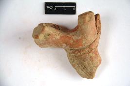| Description / विवरण | Headless terracotta horse figurine with incised lines around the neck which is adorned with pain ornament. Rest of the body is broken with neck. |