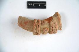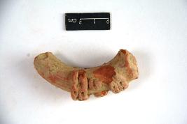 | Description / विवरण | Terracotta ornamented elephant tusk with chain decoration in applique. Both the end are broken. |