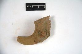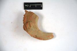 | Description / विवरण | Terracotta horse head with incised incised eyes and ridges mane. Body below neck is broken. |