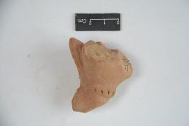 | Description / विवरण | Headless terracotta animal figurine with incised dotted decoration around the neck. Rest of the body and limbs are broken. |