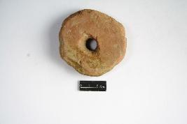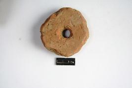 | Description / विवरण | Fragment of wheel, a perforation projected in center portion, it is treated with red slip. |