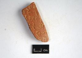 | Description / विवरण | Fragment of inscribed potsherd, which is inscribed with aloof alphabets, it is treated with red slip. |