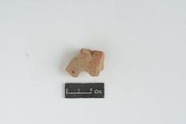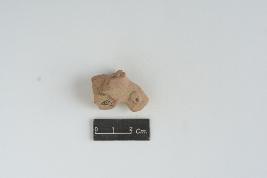 | Description / विवरण | Fragment of a horse mouth, which is projected with eyes, it is treated with red slip. |