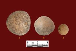 | Description / विवरण | Arecanut and spherical beads of terracotta with a central perforation across and made of medium fabric clay. |