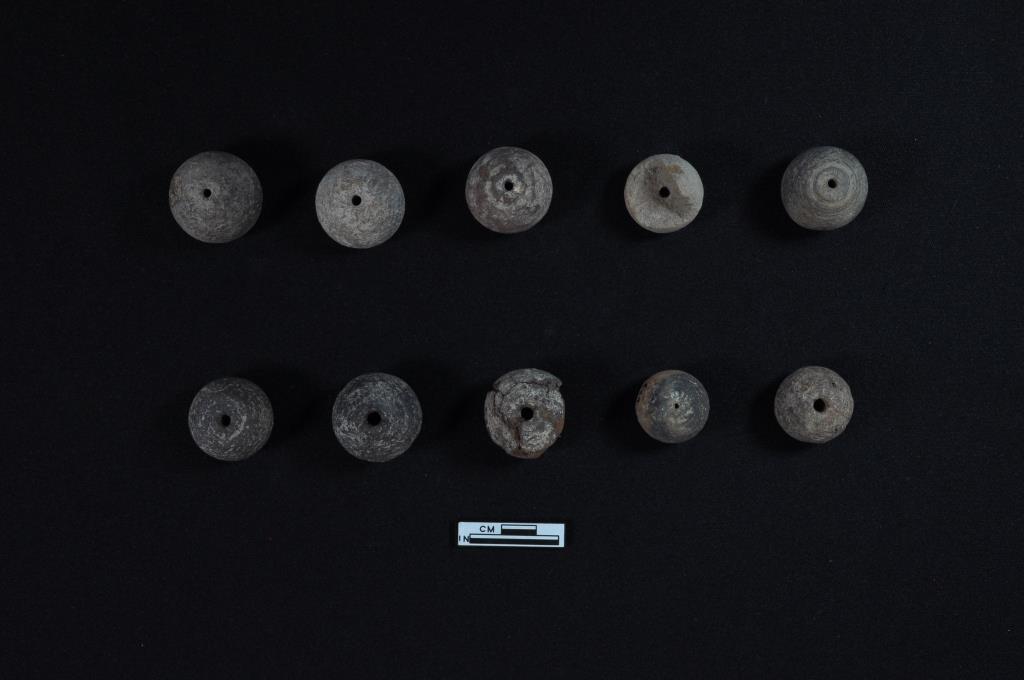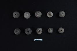 Ten number of arecanut shape beads of diferent sizes.
