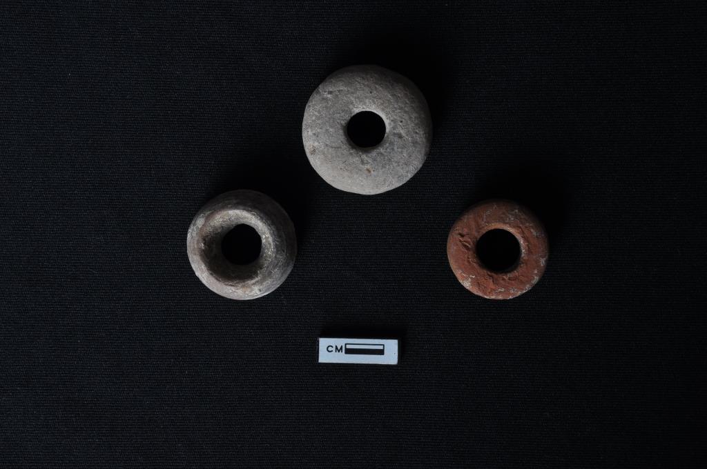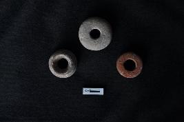 Three number of cylindrical disk shape beads with having big perforation in the centre.