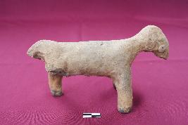 | Description / विवरण | Its is handmade animal figurine having a short neck with pointed mouth and four legs, right back leg is missing, the tail is broken, and eyes are shown by the small pallet with the hole in applique design. |