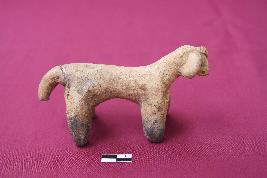 | Description / विवरण | It is handmade terracotta animal figurine having four legs, a short tail, and a long neck. Eyes are designed by small pallets in the incised hole. only the right side ear is partly preserved. |