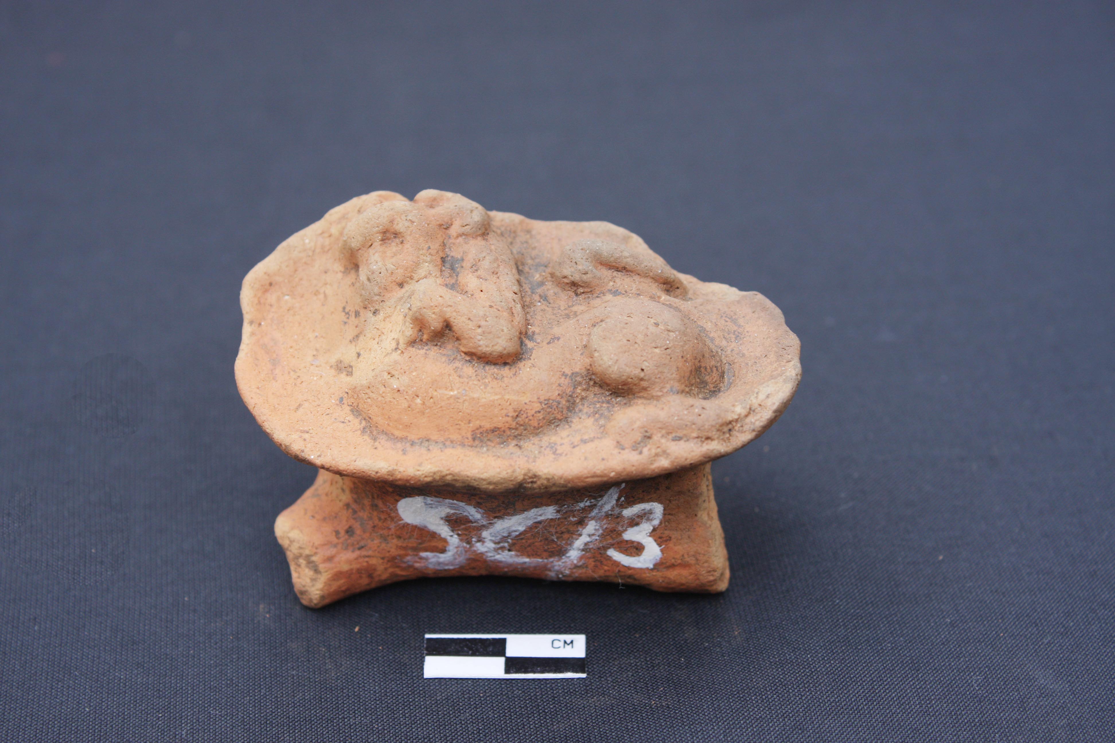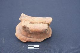 It is seated lion figure fixed in two cylindrical terracotta bars.