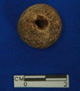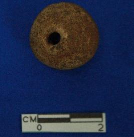 | Description / विवरण | Irregular circular bead with perforations of different width, dull red, and medium grained and ill fired. |