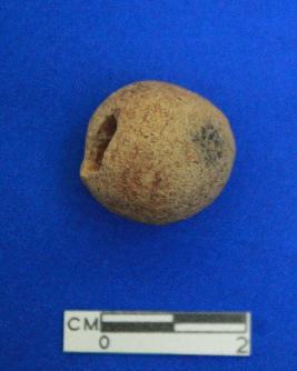 | Description / विवरण | Short, irregular barrel shaped, circular bead, dull red, fine grained, ill fired |