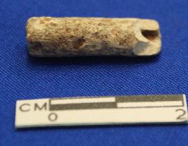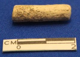 | Description / विवरण | Short, tubular bead of buff colour, medium grained, ill fired. |