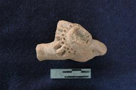 | Description / विवरण | A broken portion of a standing bull figurine, with a prominent hump and the right leg intact was found. The neck portion is decorated with a beautiful hara of bells. It shows that the bull figurine must have been a sacred motif. The hump and the leg are artistically made. |
