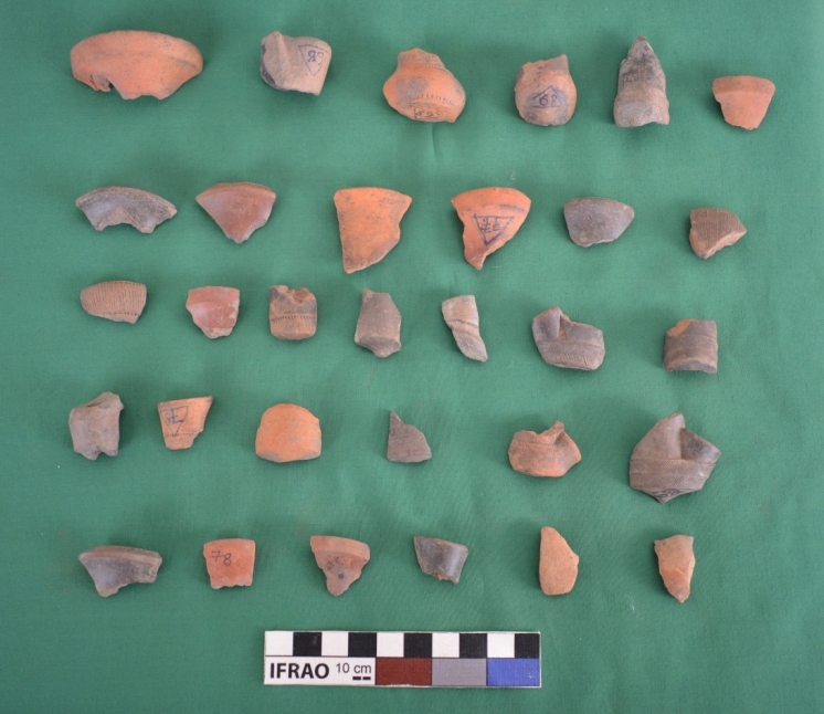 Fragmentary pieces of chillum, made in terracotta. It is black, light pink and brown in colour. Most of them are rim and lower portion of chillum, some have a decoration of regular incision marks. Few of them have polished surface.