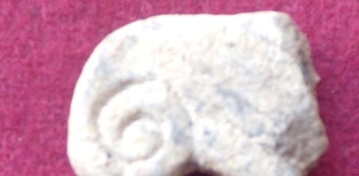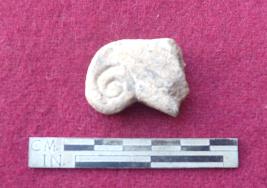 An unidentified terracotta object, black in colour with regtangular section having a design like trunk of an elephant.