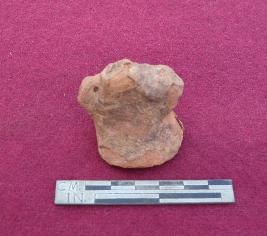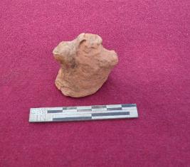 | Description / विवरण | Unidentified Terracotta figurine, having three projected portion on top of head. |