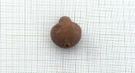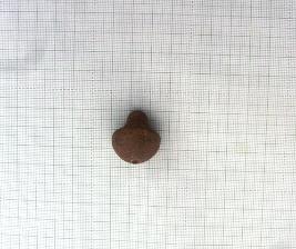 | Description / विवरण | A complete bead or spindle whorl, having a bulbous, round bottom and tapering at the top and it has a perforation in the middle. |