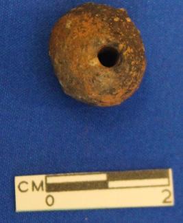 | Description / विवरण | Short, spherical bead, grayish black color, coarse grained, ill fired. |