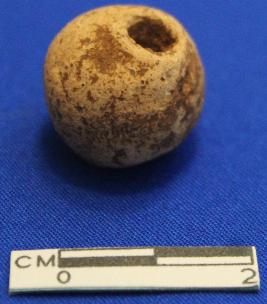 | Description / विवरण | Short, spherical bead of dull red colour, fine grained, well baked. |