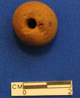 | Description / विवरण | Short, irregular spherical, circular bead, dull red colour, ill fired. |