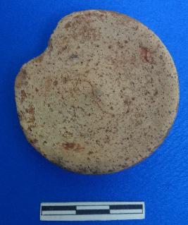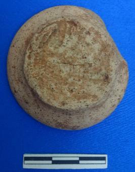| Description / विवरण | Lamp of dull red ware with soot marks on the featureless rim. Shallow, having a discular flat base, medium grained, ill fired. |