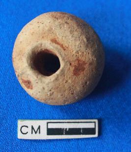 | Description / विवरण | Medium grained ill fired circular bead, grey in colour. |