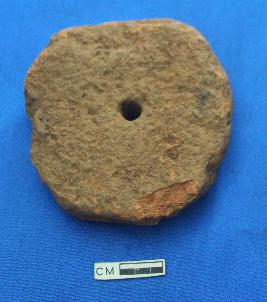 | Description / विवरण | Pottery, hopscotch, circular, red color with center hole. Medium fabric well fired. |
