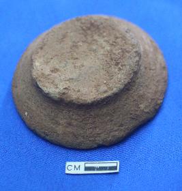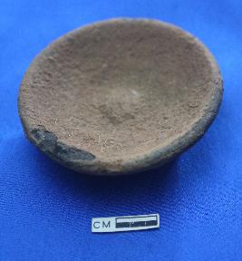 | Description / विवरण | Lamp of dull red ware with soot marks, wheel turned, shallow rounded rim, discular flat base. Made of coarse-grained fabric had a light brownish core .A short knob like projection in the centre. |