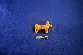 | Description / विवरण | Terracotta animal figurine, it is red in colour. The two side legs and the tail are broken while other two legs are partly intact. |