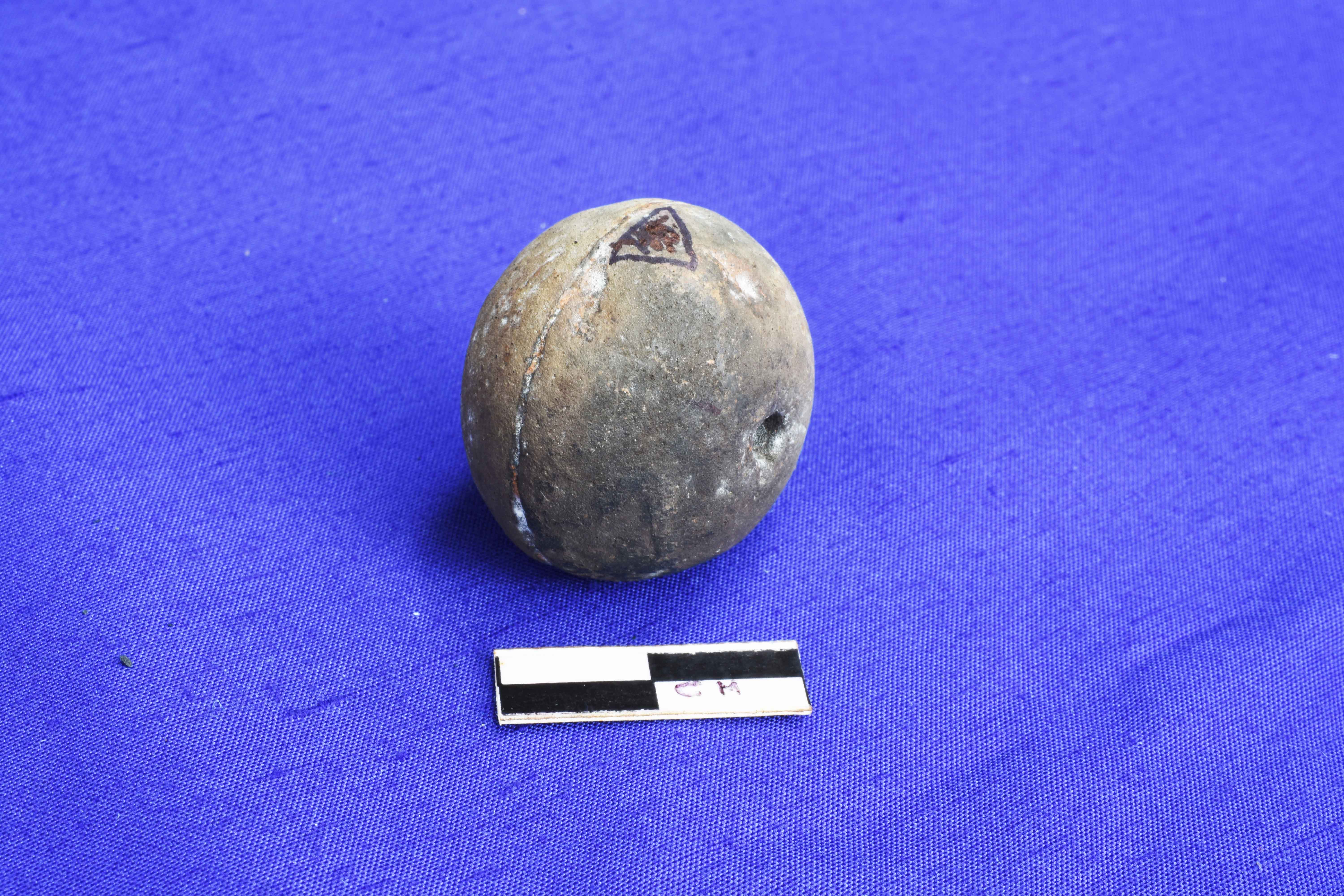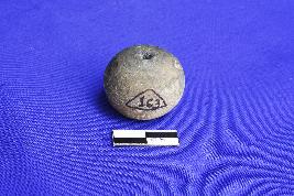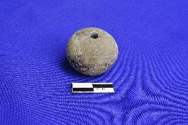 An Arecanut shaped bead with circular section and single groove in the middle. It is ill fired and is made up of fine clay.