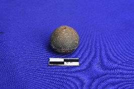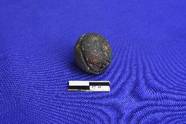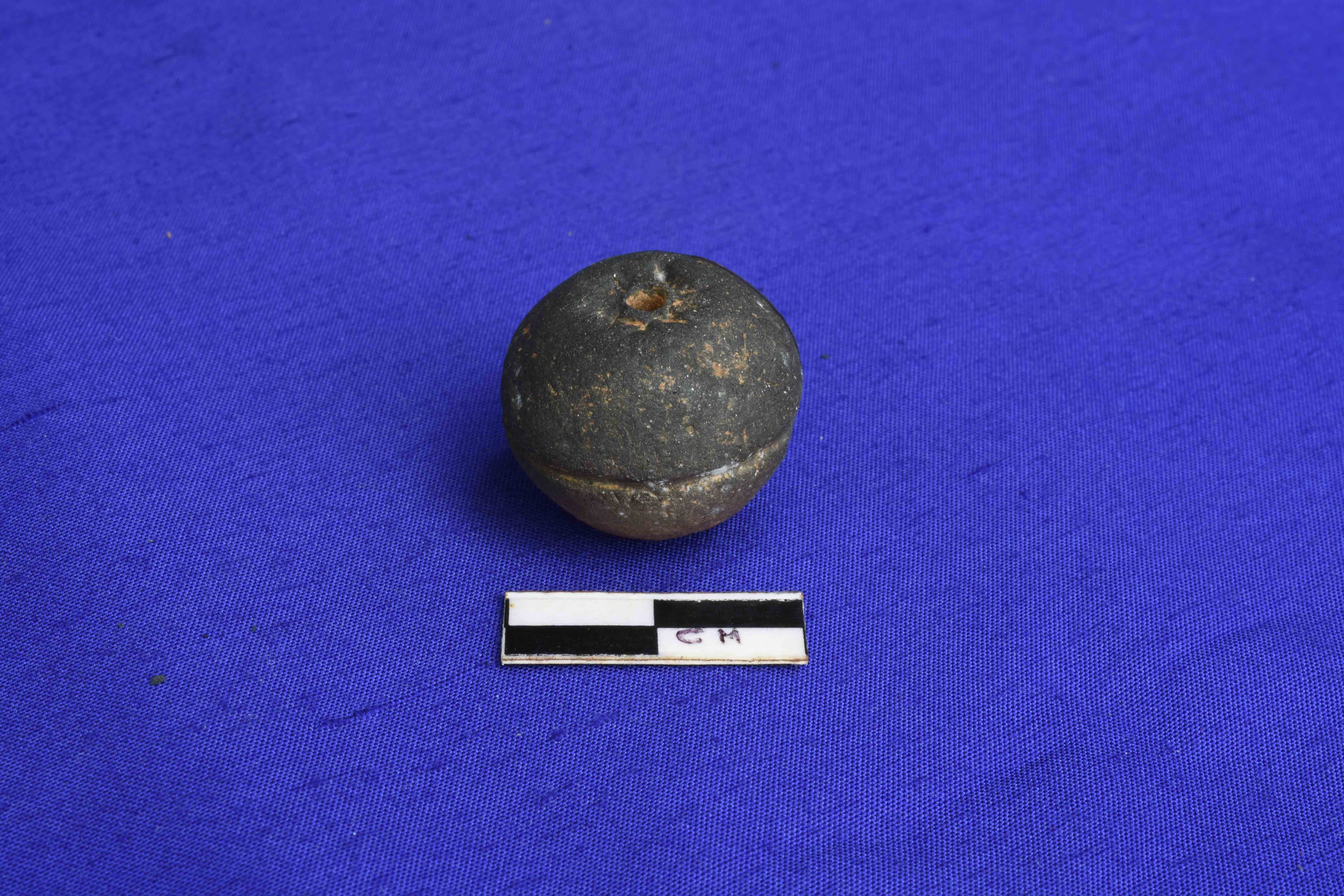 An arecanut shaped T.C Bead, ill fired, circular section with a uniform hole in the center.