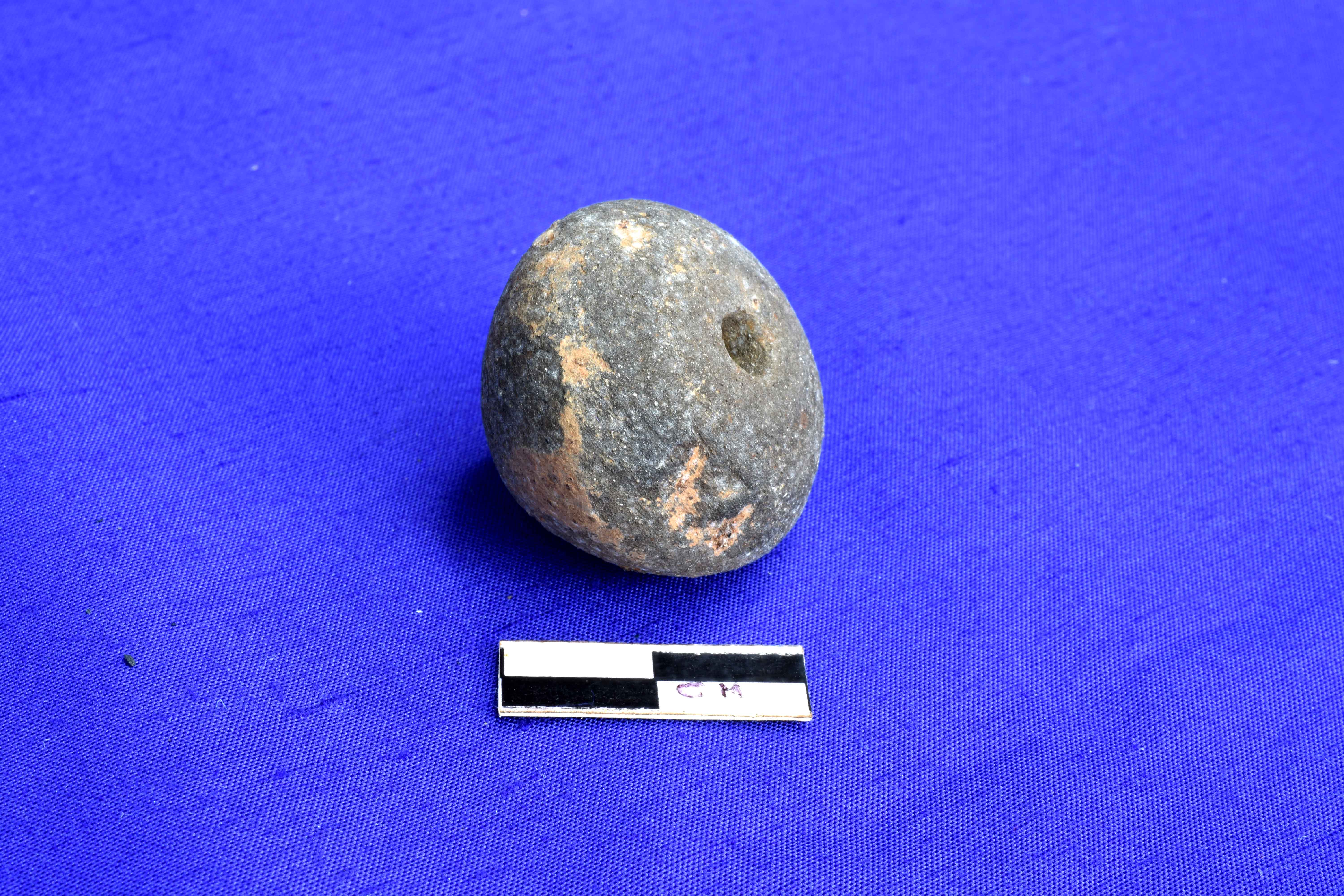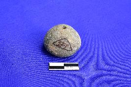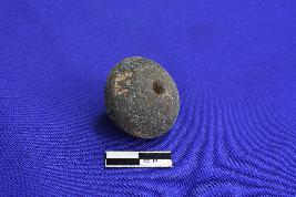 A ghat shaped bead with circular section and rough coarse, ill fired and grayish in colour.