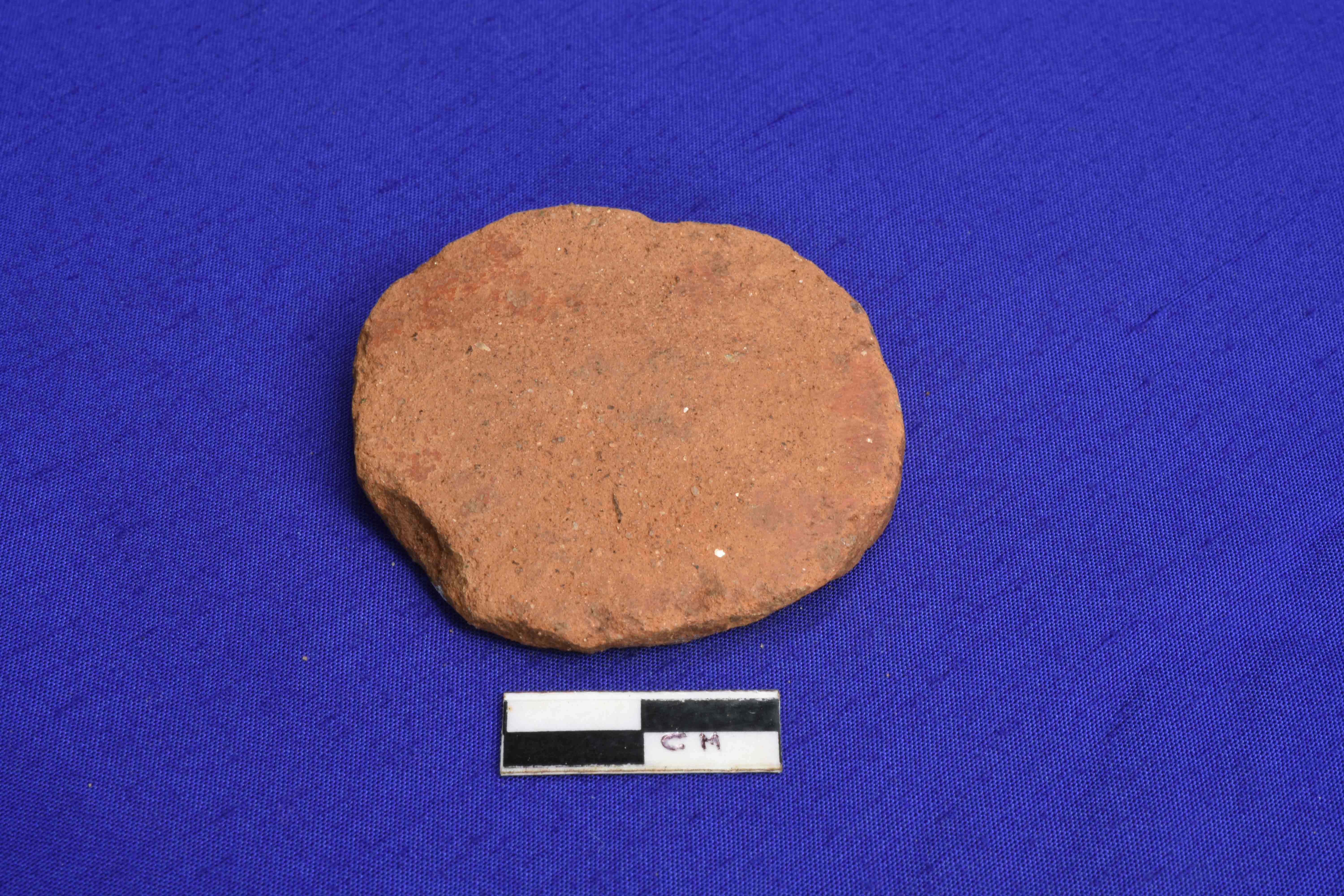 A Terracotta Hopscotch red in colour and well fired .Shape is not symmetrical .