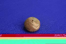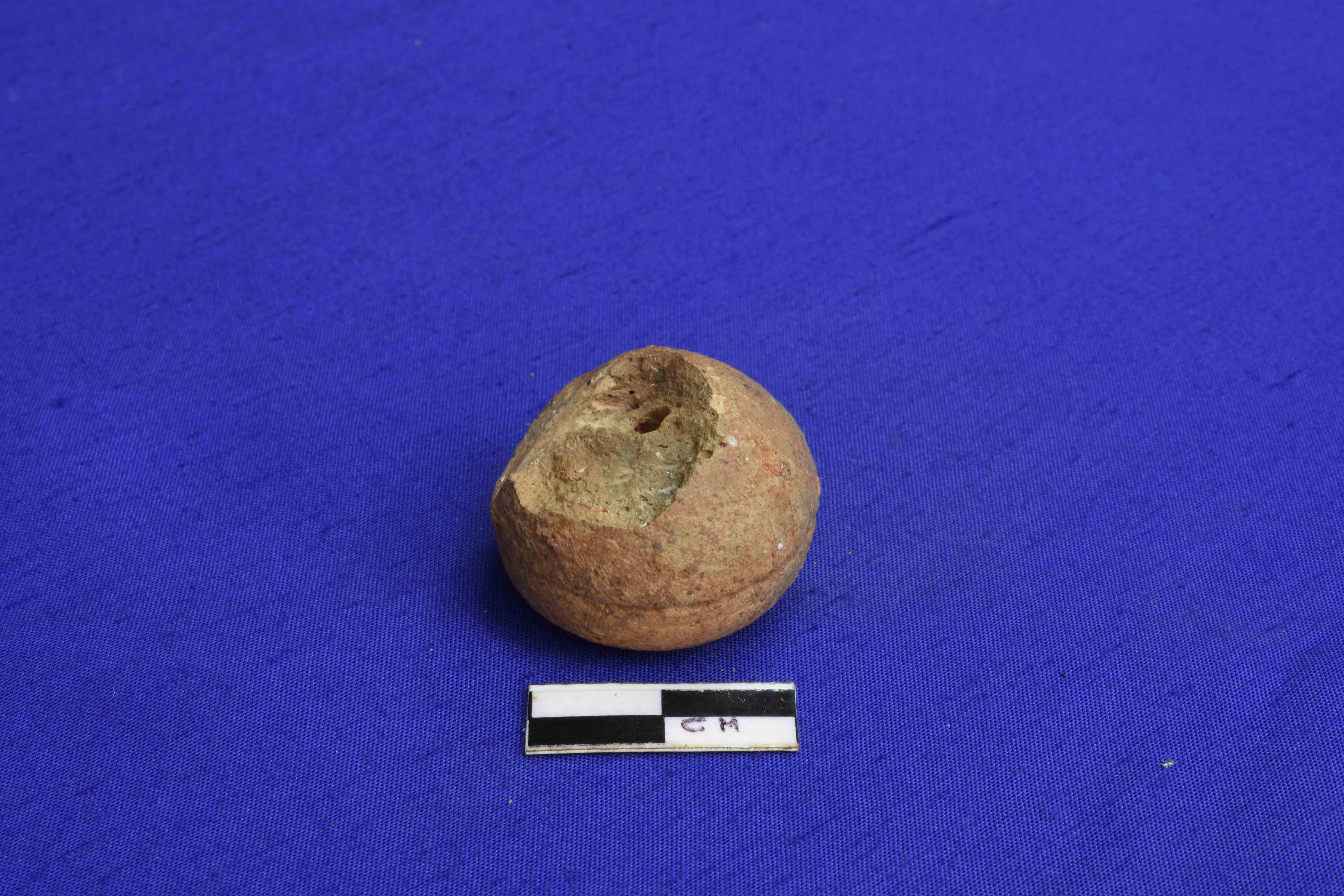 A terracotta Bead made of fine clay, with circular section and groove around the body. Devoid of any slip and black shoot mark on the surface.