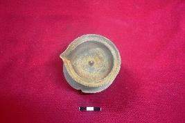 | Description / विवरण | Terracotta lamp, it is circular in shape and flatted base. Wick is intact and slip treatment given in red colour. It has slightly out turned rim with design on the outer portion of the rim. The surface of the object is partly smooth. |