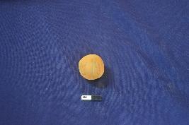 | Description / विवरण | A terracotta sling ball, it is round in shape, and it has smooth surface. The colour of the object is red. Groove designed can be seen on the surface of the object. |