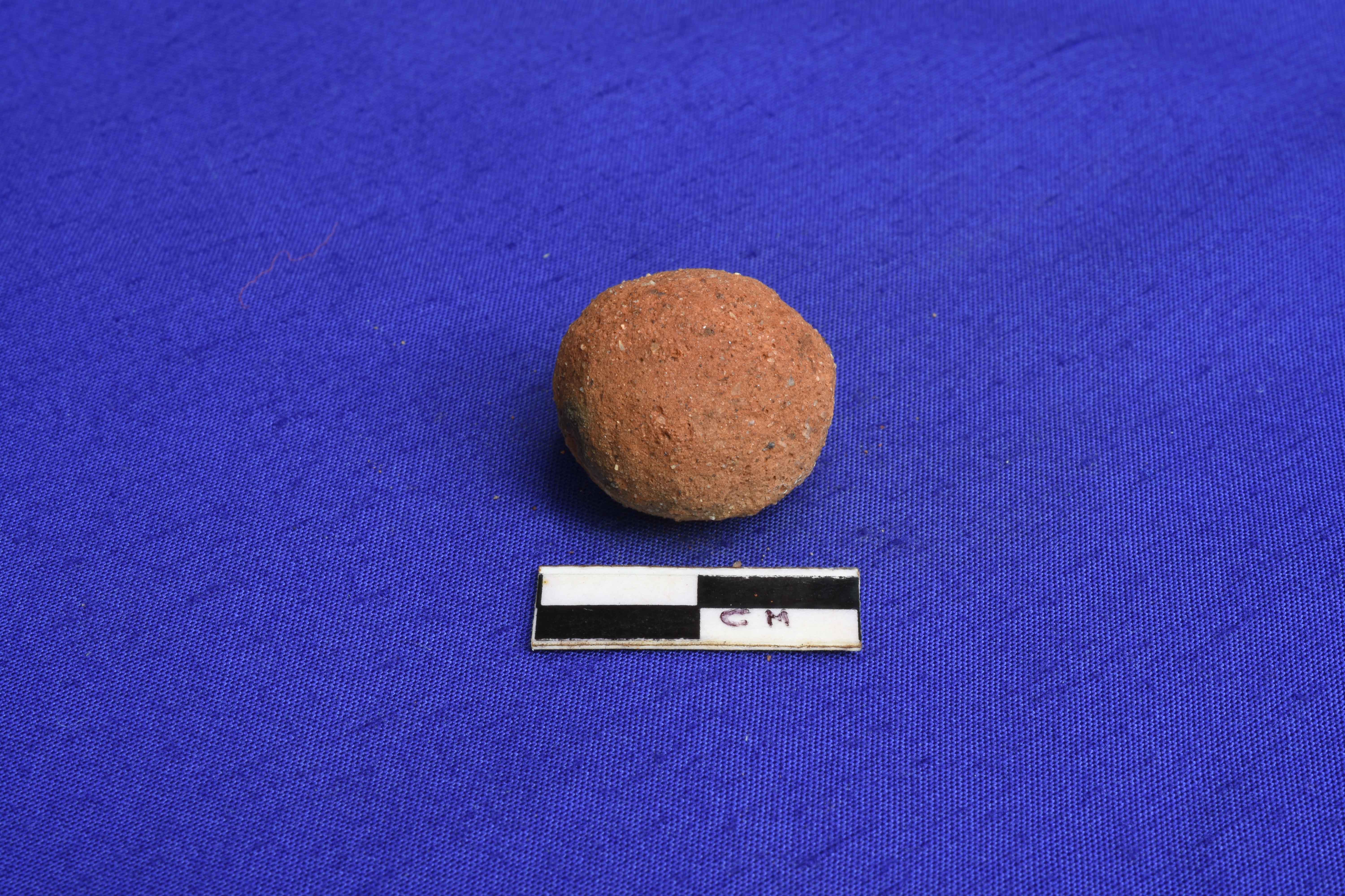A well fired Terracotta sling Ball , red in colour and devoid of any slip.