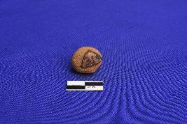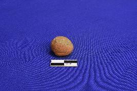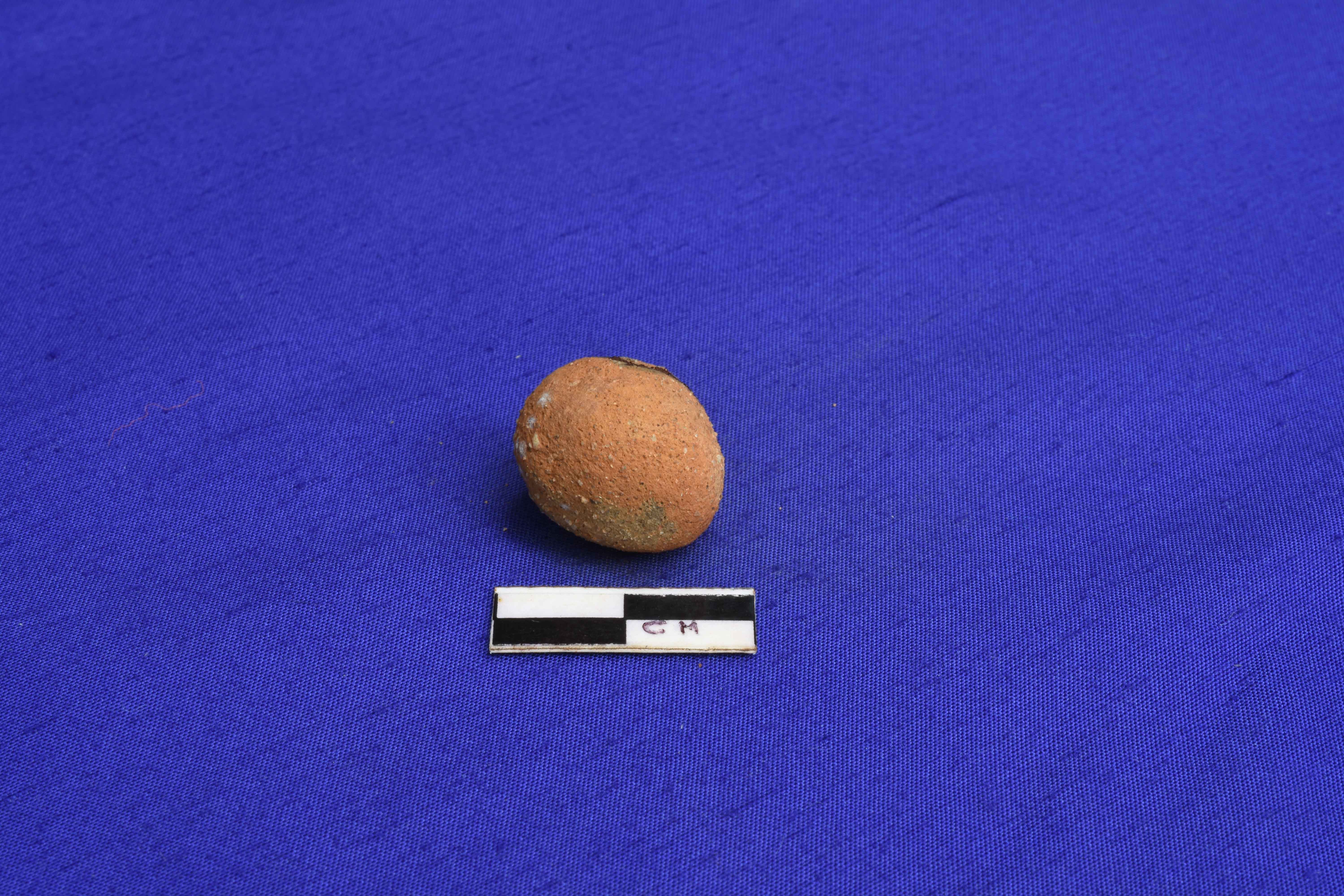 A terracotta sling ball well fired and devoid of any slip. It has rough coarse.