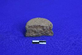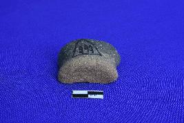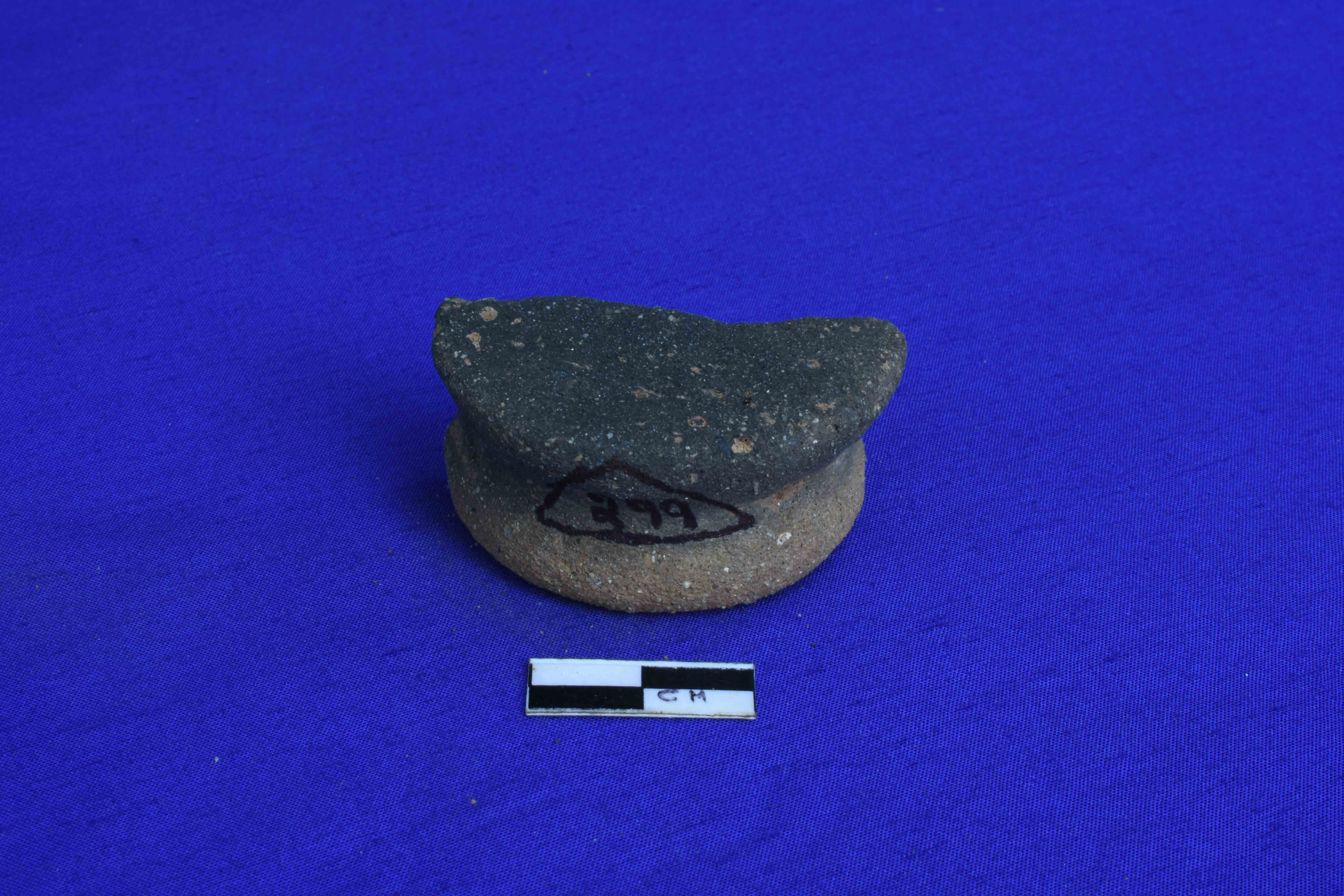 It is a terracotta Ear spool with short solid cylindrical body having groove in the center.