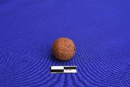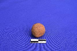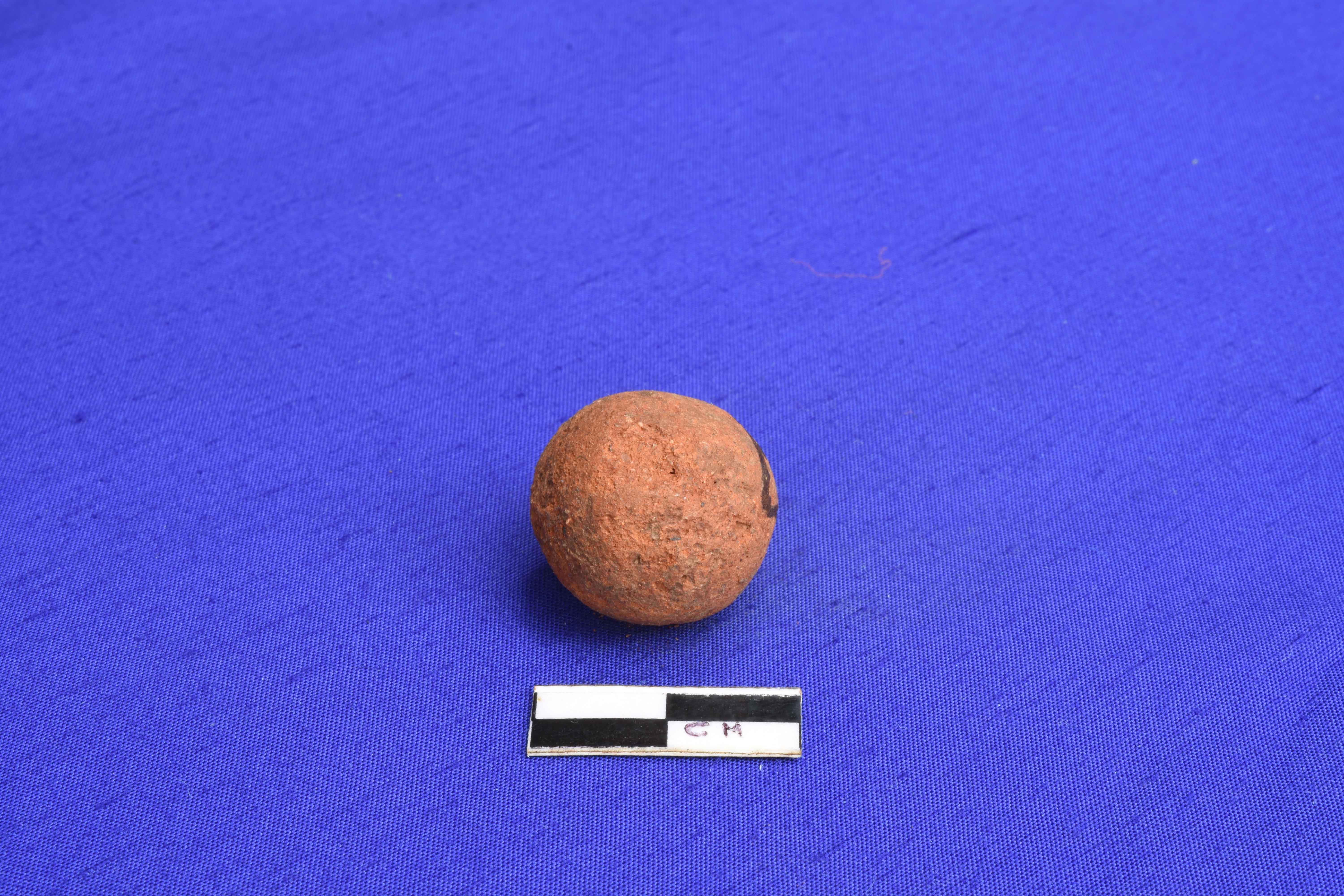 A Terracotta Sling Ball with a rough surface and devoid of any slip. Red in color and well fired.