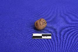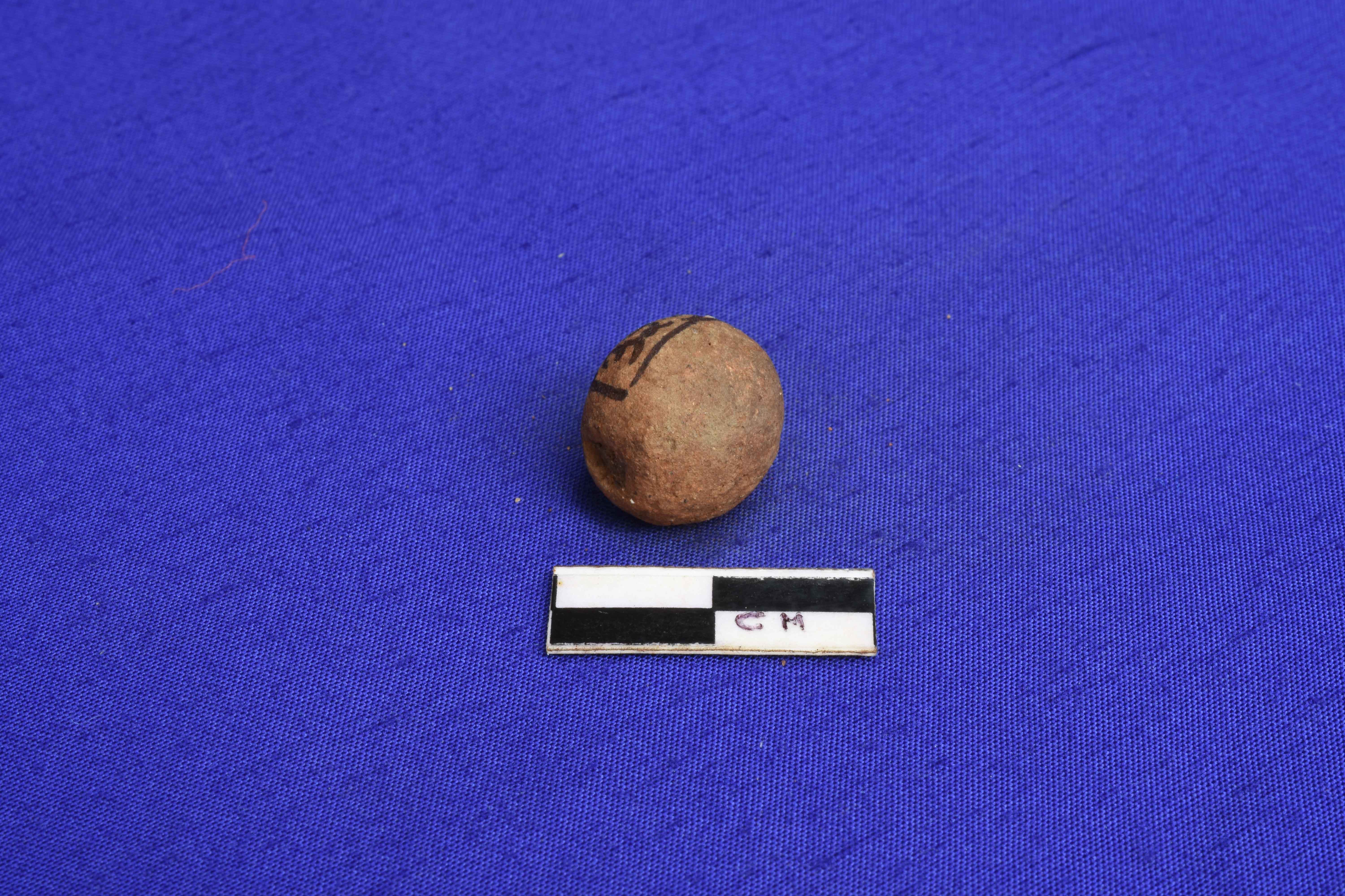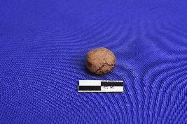 A terracotta sling ball, red in color, well fired, and devoid of slip.
