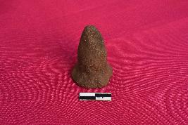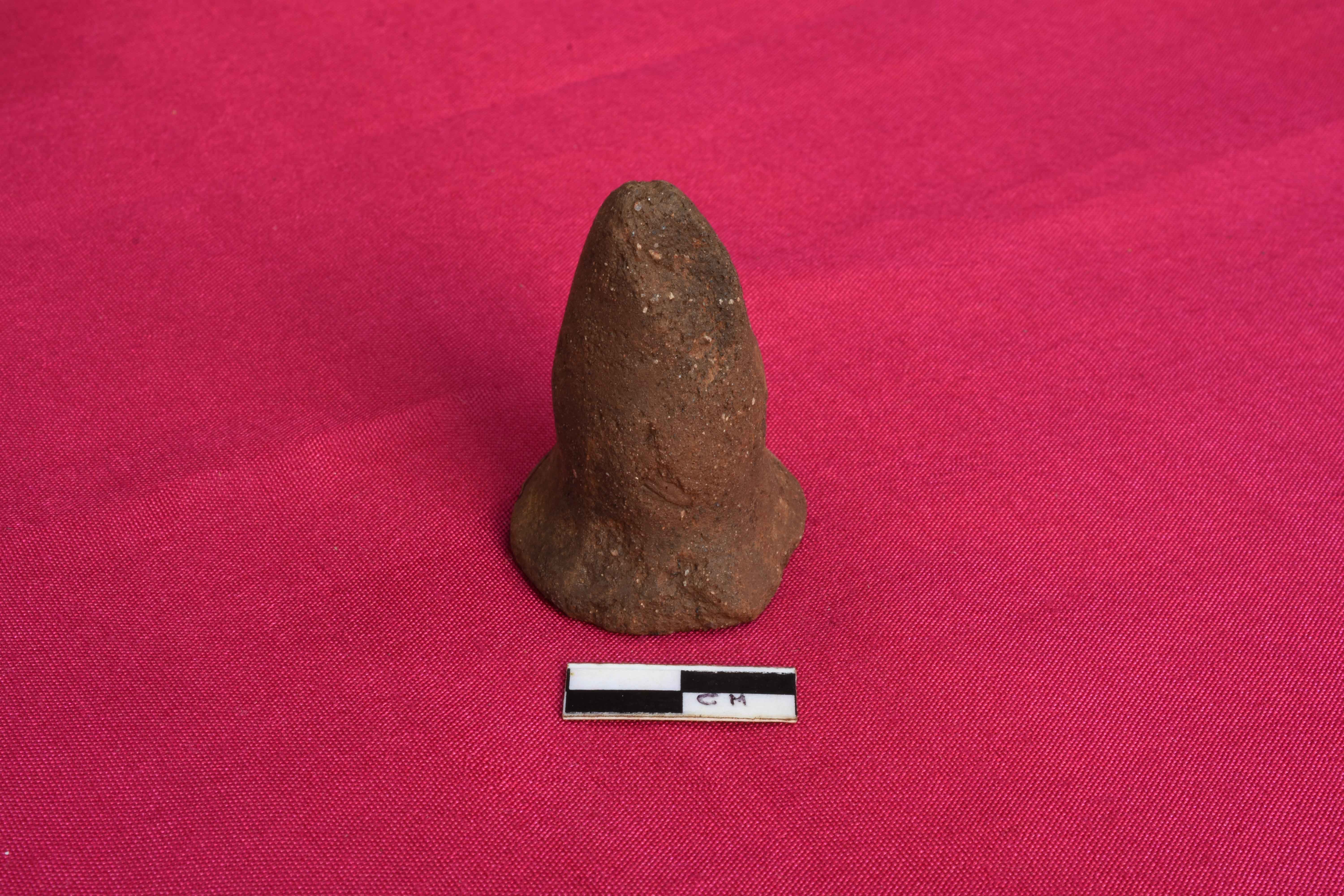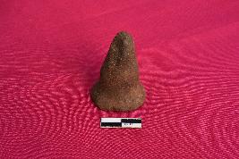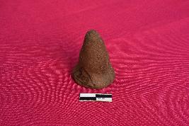 It is a terracotta Games-men with circular base and conical top. It is brownish in colour due to ill firing and is devoid of any slip.