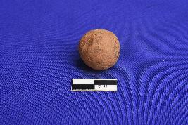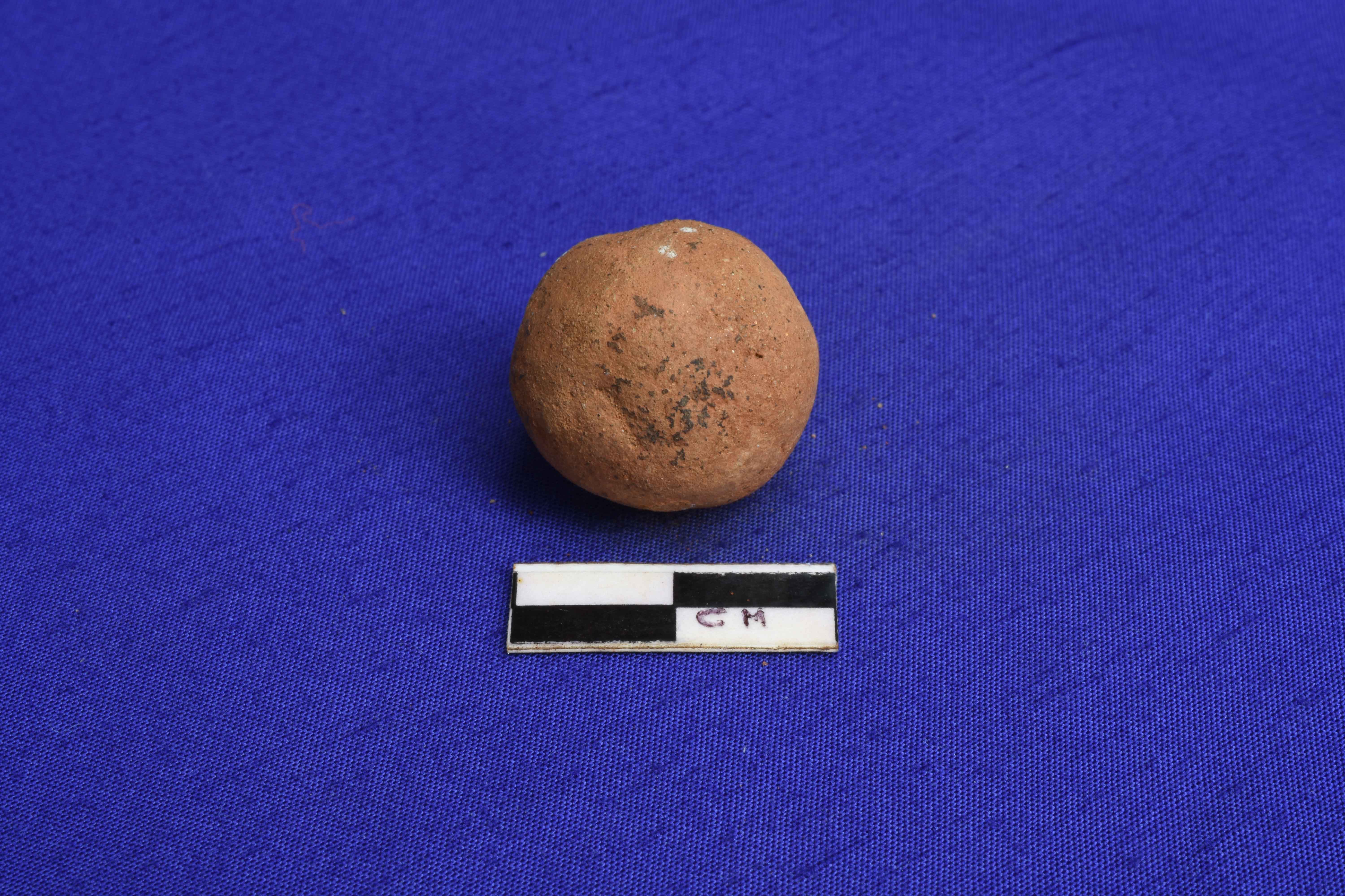 A Spherical Terracotta sling Ball well fired and devoid of slip. It has a smooth surface.